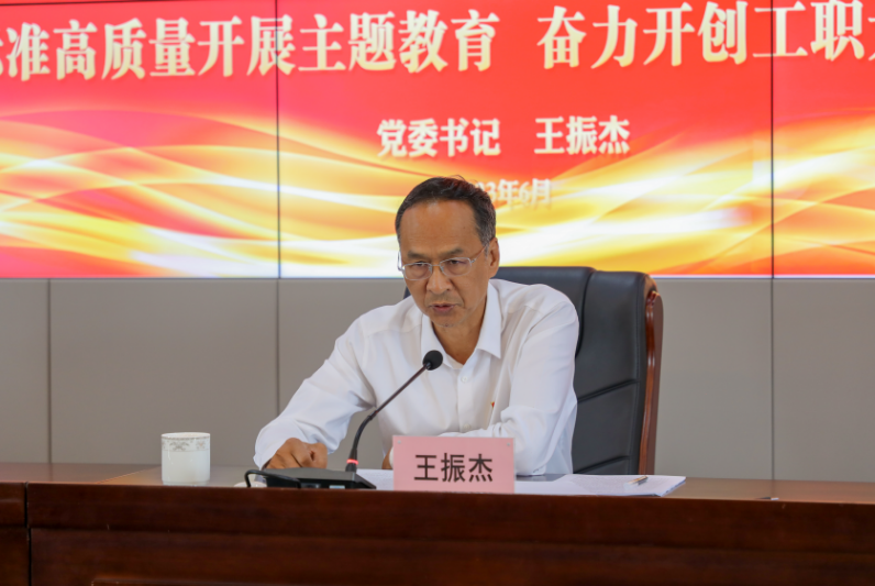 王振杰书记结合近期以来系统学习习近平总书记的有关著作,围绕感悟习近平总书记人民情怀,带领大家系统学习了“两个确立”的重要意义、习近平总书记在河北考察时的重要讲话精神、在中共中央政治局就建设教育强国进行第五次集体学习时发表的重要讲话精神以及浙江“千万工程”的经验案例,从学习党的创新理论、推进职业本科建设和扎实开展调查研究三方面对学校当前开展主题教育进行了详细阐释。王书记强调,要不断加强党的创新理论武装,牢固树立科学的世界观和方法论。要把主题教育与学习习近平总书记重要讲话和重要指示批示精神,特别是习近平总书记在河北考察时重要讲话和重要指示精神结合起来,与学习贯彻习近平总书记关于高等教育尤其是职业教育重要论述结合起来,与推动学校发展中心工作结合起来,不断强化创新理论运用和调研成果转化,推动主题教育扎实开展,努力取得实实在在的成效。