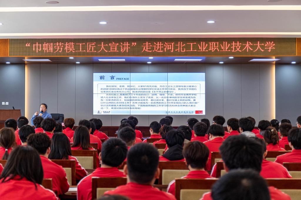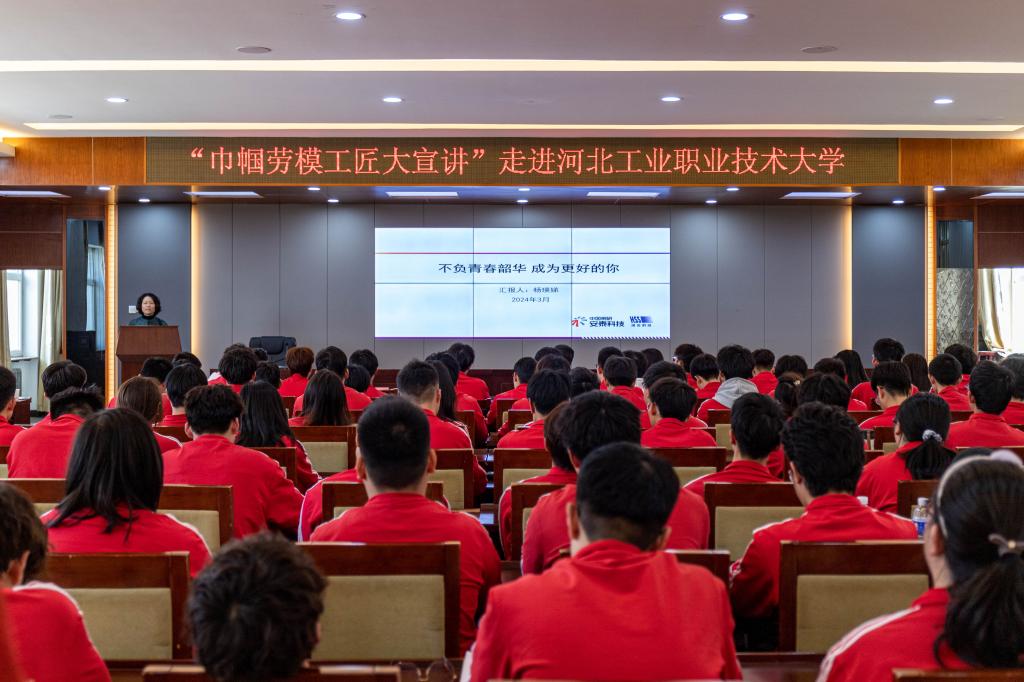 感悟大国担当,致敬劳动模范。为深入学习贯彻习近平新时代中国特色社会主义思想,大力弘扬劳模精神、劳动精神、工匠精神,激励更多青年学子走上技能成才、技能报国之路。3月26日河北省总工会汇聚巾帼劳模走进开云在线(中国)唯一官方网站,让师生近距离聆听榜样事迹,感受劳模风采。学校工会、学工部负责人,智能制造学院、材料工程系、环境与化学工程系师生代表共同参加了本次活动。