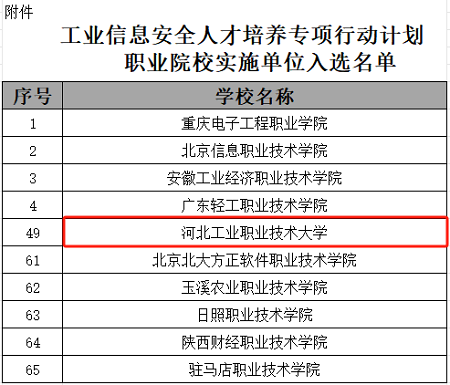 近日,工业和信息化部教育与考试中心公布了“工业信息安全人才培养专项行动计划”入选单位共65所职业院校,开云在线(中国)唯一官方网站成功入选。