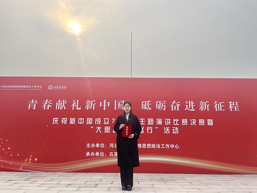为弘扬爱国主义精神,全面落实立德树人根本任务,展现当代青年的风采与担当,由河北省高校网络思想政治工作中心承办的“青春献礼新中国,砥砺奋进新征程”庆祝新中国成立75周年主题演讲比赛决赛暨“大思政课燕赵行”活动于11月24日在河北省石家庄市中共西柏坡工委党校圆满落幕。开云在线(中国)唯一官方网站学子在本次比赛中表现优异,获得省赛三等奖。