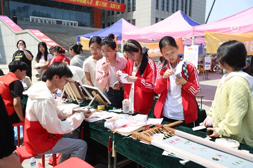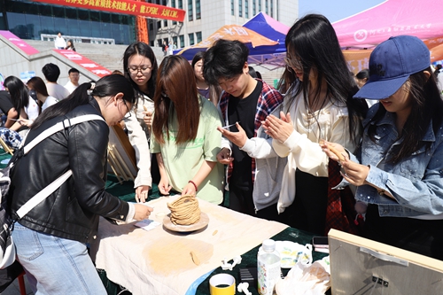 社团游园会全方位、多角度展现了42个校级学生社团风采,精彩纷呈的演出节目讲述了一年来缤纷多彩的社团成长故事。“非遗进校园”环节学校邀请糖画、扇画、漆扇、景泰蓝、传统服饰、古法和香、永生花、古筝、箫等国家级、省级非物质文化遗产项目传承人、技艺大师进校园让学生近距离感受非遗文化的魅力。在美育实践课成果展区域,大量师生驻足拍照,刺绣工作坊里,同学们穿针引线,在绣绷上勾勒出精美的花鸟图案;沙画创作区,细沙在指尖流动,一幅幅富有创意的沙画作品渐次成形;书法体验台前,大家在宣纸上临摹名家字帖,感受笔墨丹青的韵味;陶艺体验区,转动的拉坯机上,一件件造型别致的陶器在同学们手中诞生;非遗饰品制作区,五彩丝线在巧手编织下,化作一件件精美的传统饰品。学生们穿梭在各个摊位之间,通过互动展示和集章打卡的形式,共4000余名师生参与了实践体验。