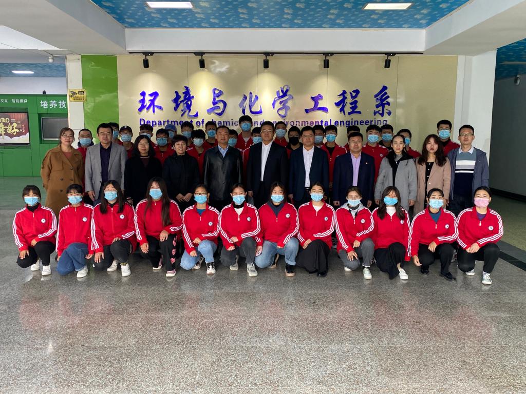 在各位领导和2020级应用化工技术旭阳班新生合影留念后,河北旭阳能源有限公司、学院及2020级新生签订了校企人才培养三方协议。会后,河北旭阳能源有限公司领导和2019级、2020级旭阳班学生进行了交流座谈。