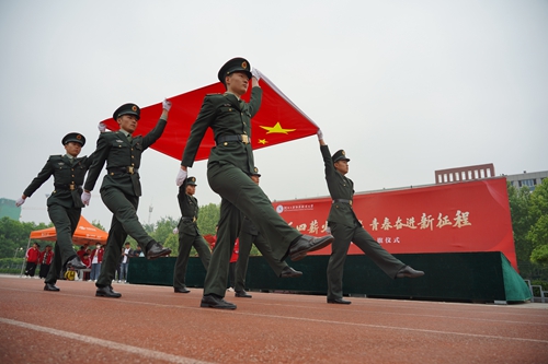 5月4日,“五四薪火耀红旗 青春奋进新征程”五四主题升旗仪式在校园体育场隆重举行。学工部、九系(院)党总支书记、团总支书记、辅导员和学生参加仪式。
