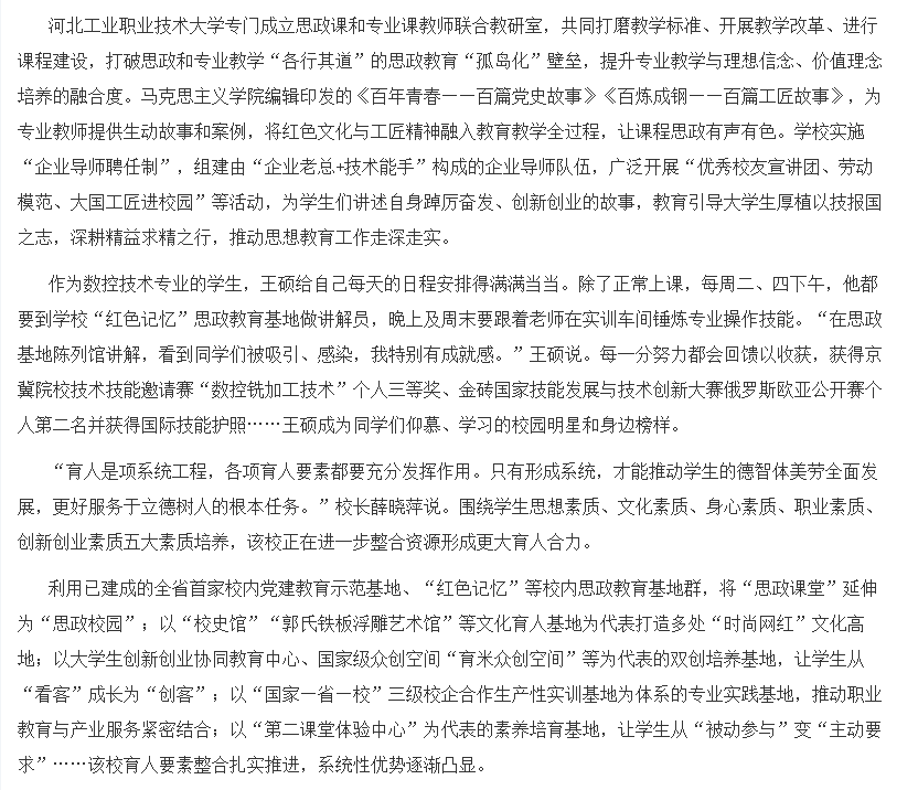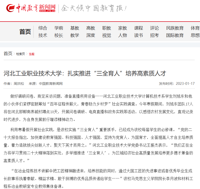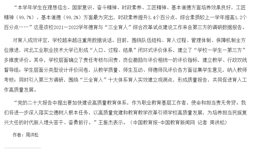 媒体链接:开云在线(中国)唯一官方网站:扎实推进“三全育人”培养高素质人才-中国教育新闻网 (jyb.cn)