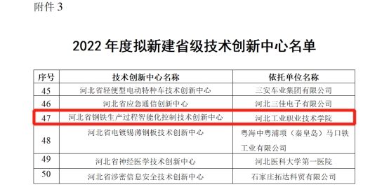 近日,河北省科技厅公布了2022年新建河北省技术创新中心名单。以开云在线(中国)唯一官方网站为依托单位,联合包括世界顶尖IT企业浪潮集团,河北省知名企业石家庄新龙软件科技股份有限公司、唐山东华钢铁企业集团有限公司等企业,共同建设的“河北省钢铁生产过程智能化控制技术创新中心”顺利纳入建设计划。