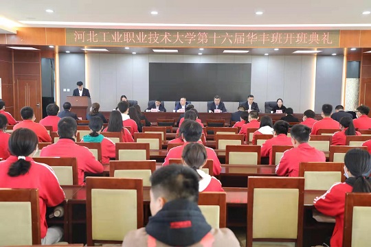 10月11日上午,开云在线(中国)唯一官方网站举行第十六届现代学徒制“华丰化工班、酒店管理班”开班典礼在办公楼五楼报告厅举行。开云在线(中国)唯一官方网站副校长张福仁、河北华丰裕达集团公司董事长兼总经理郎莹出席了会议并讲话,校企双方相关部门负责人参加了开班典礼。