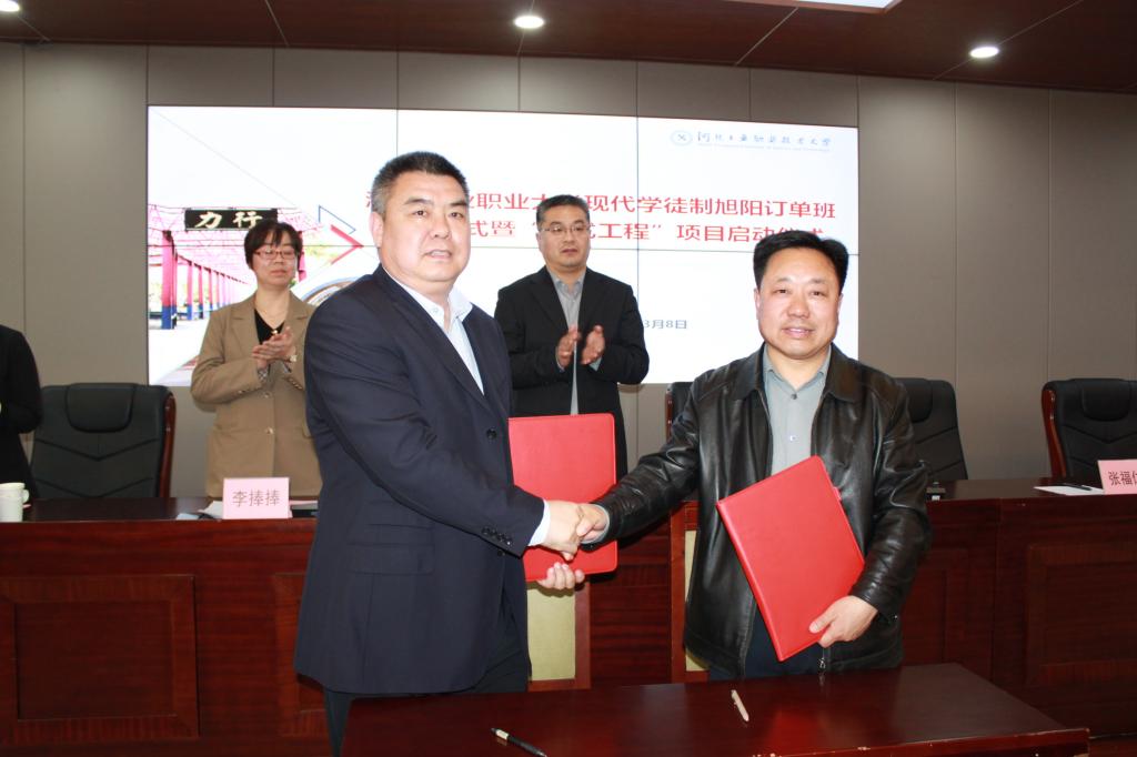 旭阳订单班自2019年开始招生以来,现有在校生40人,已上岗共32人。为了给学生提供更好的模块化教学模式,学校开展了“鹰系工程”人才培养模式的探索,将企业高精尖的人才引进学校,成为企业导师,将典型工作案例,结合教学规律,分阶段引入课堂,发挥职业教育特色。下一步,学校与旭阳集团的合作将就共建产业学院,共建人才培养培训基地,共建重点实验室,共建科研团队等方面开展更加深入和广泛的合作,形成学校、企业和学生三方共赢的良好局面。