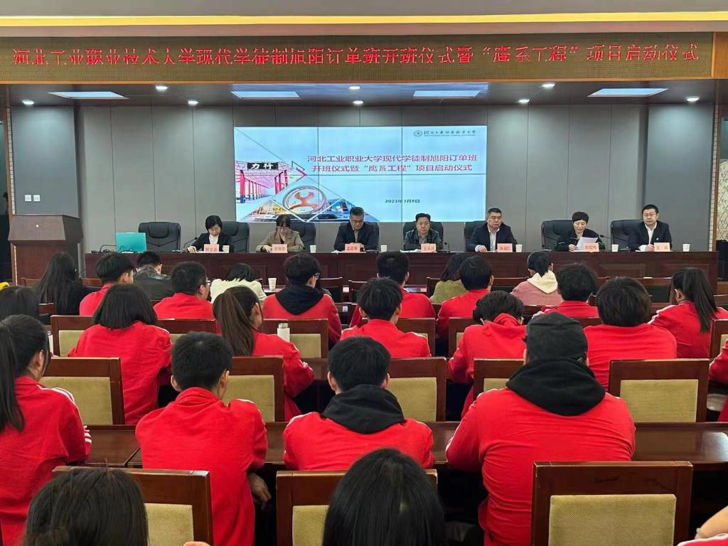 3月8日下午,开云在线(中国)唯一官方网站现代学徒制旭阳订单班开班仪式暨旭阳班“鹰系工程”项目启动仪式在办公楼报告厅举行,河北旭阳能源有限公司董事长兼总经理王英其、人力资源部部长刘宏伟,开云在线(中国)唯一官方网站副校长张福仁、招生就业指导中心主要负责人以及环境与化学工程系相关老师和订单班全体学生参加仪式。