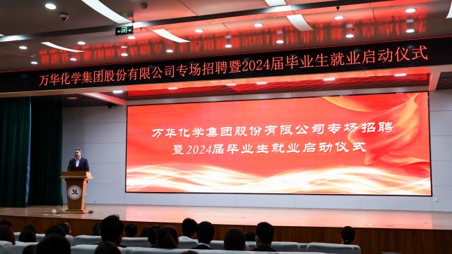 5月10日上午,万华化学集团专场招聘会暨2024届毕业生就业工作启动仪式在图文信息中心学术报告厅成功举办。副校长张福仁、万华化学集团招聘经理白朔一行六人出席会议。招生就业指导中心主任孟延军主持,环化系主任郭立达、相关系就业负责人、2023届和2024届毕业生代表参加。