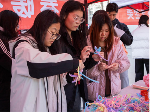 本次活动采用线上报名、线下参与的方式,设计了“茶艺至美”“汉韵流转”“指尖芳华”“旋转运动”等六个活动环节,吸引了同学们围观参与。在精心布置的“心愿墙”区域,同学们纷纷在墙上写下自己的心愿和对未来的美好期待。在活动现场还有免费美甲和自制插花等方式带领同学们体验手工制作的乐趣,也为同学们自我表达和个性展现搭建了舞台,现场活动气氛热烈。