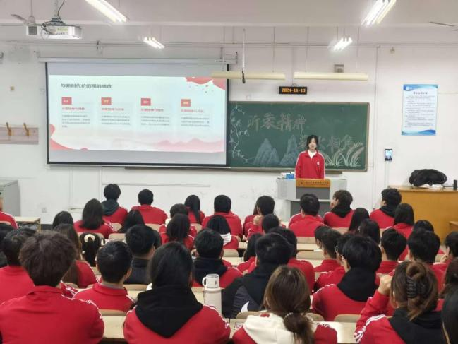 “沂蒙精神”宣讲团以“沂蒙赤心,薪火相承”为主题从沂蒙精神的基本内涵入手,以沂蒙红嫂为例,向同学们讲述了沂蒙精神诞生的原因,号召青年学子要积极学习沂蒙精神,要将沂蒙精神结合新时代发扬光大;“井冈山精神”宣讲团以“井冈星火源 精神永流传”为主题,通过回顾井冈山斗争历史,弘扬井冈山精神,以“让井冈山精神延续”为初心,鼓励同学们通过学习井冈山精神,坚定理想信念,勇于担当作为要敢于“啃硬骨头”、敢于挑重担子,从我做起、从小事做起、从当下做起;“延安精神”宣讲团以“传延安火种,扬圣地精神”为主题,围绕“新时代如何赓续好延安精神?”这一问题,从理想信念、科学理性、伦理价值、实践意志四个层面进行宣讲,阐述了延安精神的形成过程。“两弹一星”精神宣讲团以《守初心》、《惊天地》、《闯星途》三个篇章讲述了“两弹一星”元勋郭永怀、王淦昌和“中国核潜艇之父”彭士禄三位科学家的故事。他们将自己对老一辈科学家的理解与感受融入其中。