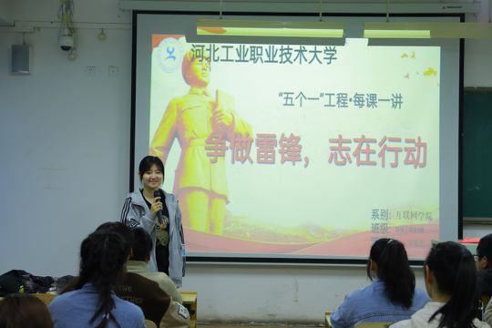 班团支部、社团支部发起主题团日,共同研读雷锋书籍、开展雷锋精神大讨论,以“争做雷锋、志在行动”为主题进行“每课一讲”课前演讲。累计进行487场,近1000名同学参与演讲,分享身边榜样。