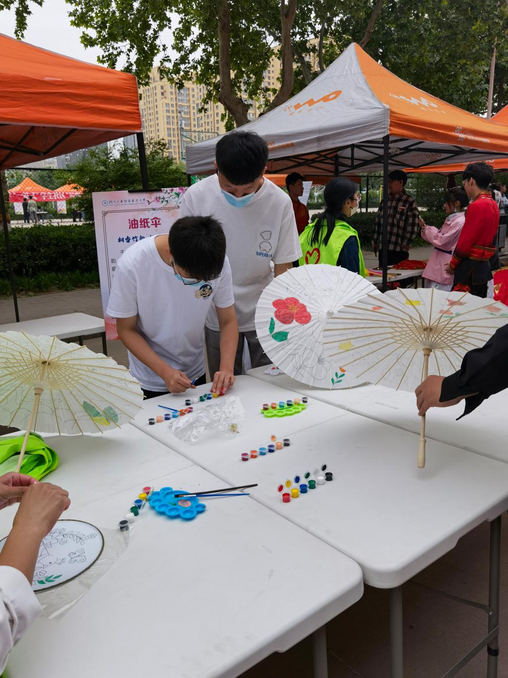 同学们在“彩虹树”上按下启动手印,本次实践体验活动正式拉开了帷幕。活动现场,有汉服礼仪、拉花舞蹈、传统乐器、经典茶艺、软笔书法等传统文化体验,也有簪子、缠花、团扇、油纸伞等传统手工制作。学生们积极参与,热情高涨,并纷纷带着体验成果在“彩虹相框”留念合影。