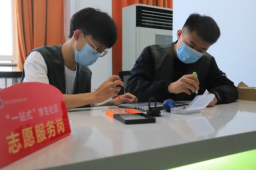 活动中,“一站式”学生社区建立了“志愿服务岗”,通过线上线下平台招募“社区义工”,号召社区学生党员、入党积极分子、学生干部、志愿者从防控志愿类、社区服务类、关爱救助类、义务帮扶类和宣传推广类等志愿服务类型中选取擅长项为师生们提供志愿服务。最终活动招募志愿者100余人,志愿者们为同学们提供了学业帮扶、衣物缝补、健身指导、旧衣捐赠、美照拍摄、手机贴膜、硬盘清理等实际服务,不同程度地满足了学校师生在校的学习和生活需求。