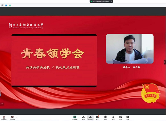 本次青春领学人是2022年河北省青马班学员、来自计算机技术系的秦子轩同学,通过线上直播分享的方式,带领学员们学习了二十大报告的第三部分内容,学员们就原文内容共读共学、共抄共记,积极分享学习感悟,学习氛围浓厚。本次领学会上评选出10篇优秀原文摘抄笔记,鼓励学员们养成良好的理论学习习惯,提升学习效果。