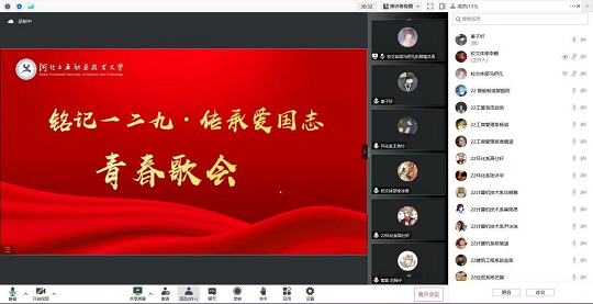 为纪念一二·九运动,激发广大学生的爱国热忱,弘扬爱国主义精神,12月9日,学校举办“铭记一二九·传承爱国志”青春歌会,以歌传情,吟唱历史光辉,绽放青春华彩。