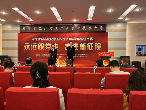 为深入弘扬以爱国主义为核心的五四精神,展现新时代青年朝气蓬勃、奋发进取的精神面貌,团委组织学生参加由河北省社会科学院、共青团石家庄市委员会、石家庄市学生联合会、河北省演讲与口才学研究会等举办的省会高校纪念“五四”104周年演讲赛。