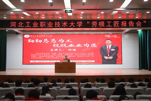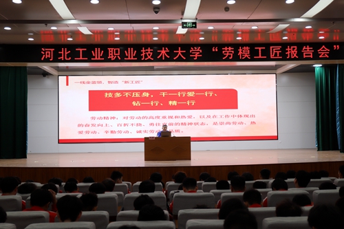 为大力弘扬劳模精神、劳动精神、工匠精神,激励更多青年学子走上技能成才、技能报国之路。近期学校邀请全国五一劳动奖章获得者、石家庄煤矿机械有限责任公司毛料分厂焊接机器人应用与创新团队领军人物关虎,全国青年岗位技术能手、河北电机股份有限公司自动化工程师印超两位工匠进校,与工职大学子面对面分享自己从一名普通技术工人成长为劳模工匠的心路历程。