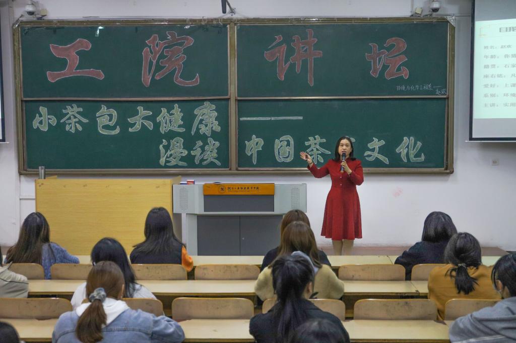 “茶包虽小亦能养生,养生之道茶包之中”。10月12日晚,环境与化学工程系制药教研室的赵欢老师以“小茶包,大健康”为主题展开精彩讲座,从不同侧面出发细致的讲述了茶的养生之道以及茶道文化的魅力。