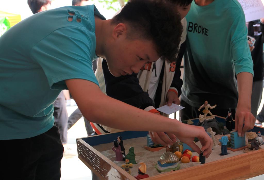 接下来的趣味心理游园会采用打卡的方式,每完成一项游戏,可获得1枚印章。本次游园会共设置三个区域,分别是体验区、挑战区、探索区。在体验区,“心心色色——巧涂色彩帮解压”曼陀罗绘画激活内在能量。“心随我动——情绪宣泄有方法”“心满意足——钢宝送爱送抱抱”让内心的情绪压力得以释放,学会分享爱,拥抱爱。在挑战区,“心心相印”背夹球、不倒森林、珠行万里、五人六足、无敌风火轮等游戏,通过团队合作的形式,加强同学们之间的沟通和交流,培养团队精神和集体合作意识。在探索区,“心灵邮差——神奇卡牌有话说”“心灵奇旅——感悟一沙一世界”“心理测评——探索发现你自己”“心语倾听——寻找心的小世界”,通过珍爱卡体验、沙盘游戏、心理测评等,藉由分享、叙说,为同学们创建一个安全、包容的表达空间,挖掘内心积极力量。活动现场气氛热烈,同学们纷纷表示,通过此次活动对自身有了更全面地认识和了解,对于更好地悦纳自己有了更深体会和感受。