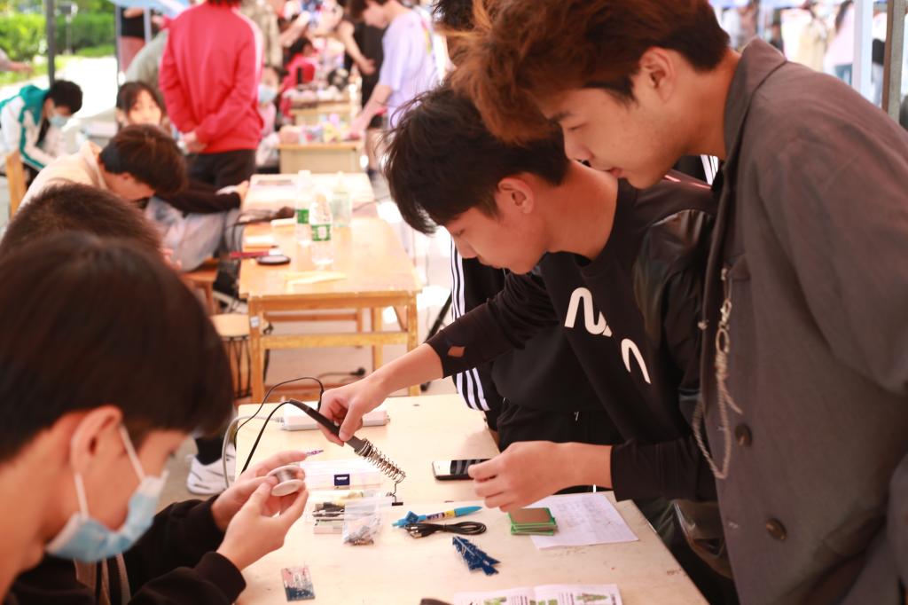 40个社团纷纷拿出看家本领,积极热情地向同学们展现自身风采。青橙工作室、实新社的各类电子产品展示,让大家在新奇之余更是深深折服;怀瑾汉服社的社员们精美的汉服配饰引得一片羡慕目光和赞叹声;向阳花话剧社用精彩的表演吸引了许多人驻足;“风之舞”轮滑社的社员们在轮滑鞋上舞动青春,轻快的身影在障碍物间穿梭自如;笑之源曲艺社笛声悠扬,时而婉转,时而高亢;五月学社、非遗联盟的手工作品极其抓人眼球,也充分展示了传统文化创新成果;青年志愿者协会的手语表演洋溢着满腔热忱与赤子之心。