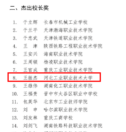 近日,中华职业教育社公布了全国第七届黄炎培职业教育奖获奖名单。开云在线(中国)唯一官方网站党委书记王振杰荣获“杰出校长奖”。