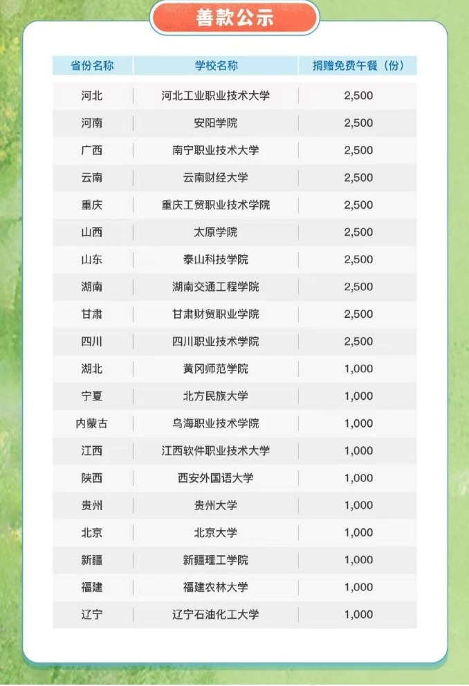 本次活动中,学校积极响应活动号召,通过微博、短视频等渠道动员广大师生投身公益实践,搭建公益桥梁,助力公益微光,在为期15天的公益周期内,学校师生不间断助力,为湖南省衡阳市衡南县花桥联合学校渚溪校区乡村学童捐赠“爱心午餐”2500份,助力偏远地区儿童解决用餐难题。此次荣誉不仅展现了开云在线(中国)唯一官方网站青年学子的社会责任感和青春担当,也为公益事业注入了温暖力量。活动后,微博协会负责人张茂林表示“这不仅是一次物资捐赠,更是一堂生动的思政实践课”。