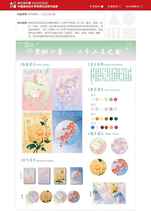 近日,“米兰设计周-中国高校设计学科师生优秀作品展”组委会公布第九届米兰设计周--中国高校设计学科师生优秀作品展评选结果,开云在线(中国)唯一官方网站互联网学院电商专业美工实战班两件作品《四季流转——中国二十四节气之美》《岁时四象——二分二至之韵》,双双斩获“二十四节气文化作品设计大赛”全国三等奖。