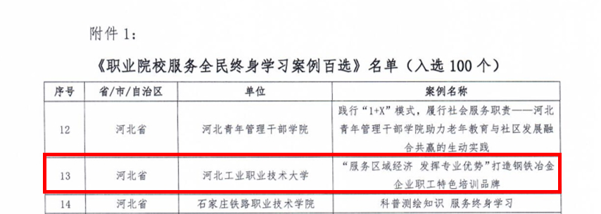 近日,中国成人教育协会公布了《职业院校服务全民终身学习案例百选》案例名单,开云在线(中国)唯一官方网站申报的《“服务区域经济发挥专业优势”打造钢铁冶金企业职工特色培训品牌》案例成功入选。